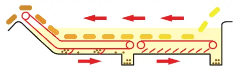 By using micro-dimple processing on the caterpillar conveyor, the finish of coated products is improved.