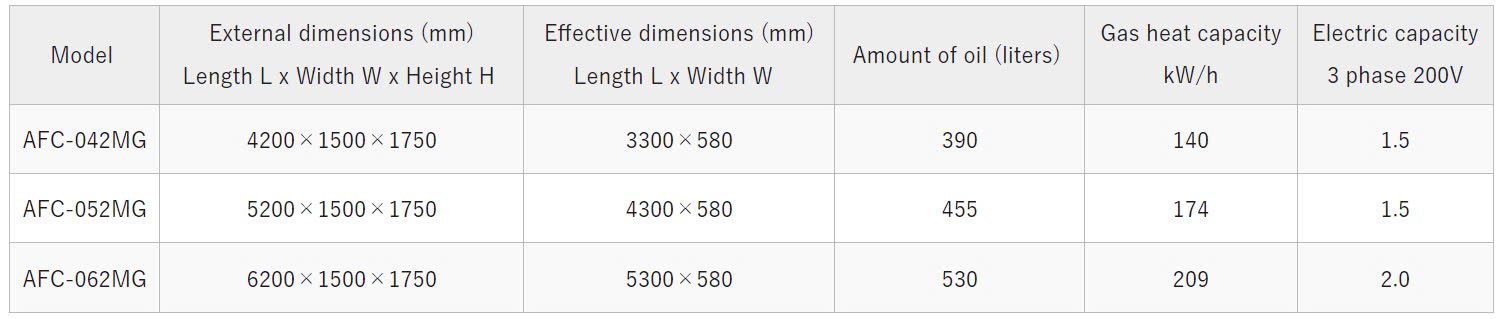 *Capacity varies depending on the food being fried, so please contact our sales representative.