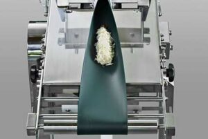 This is a breading machine specialized for fried shrimp, fried crab claws, kushikatsu, bale-shaped and ball-shaped foods. It can handle any type of breading and any size of holes. Special specifications include [breading with sliced almonds], [corn kernels], and the [strips of skin] of shumai with skin, which can be circulated without stress, making it the perfect machine for creating high-added-value products.