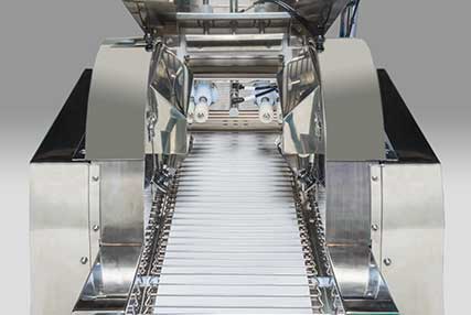 This model is highly popular not only in the prepared food industry, but also in the confectionery and bakery industries. It can also be used for finely powdered bread crumbs. Two types of models with different conveyor widths are available depending on the production volume.