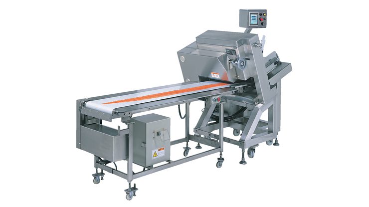 ●Shape cutting! The sliced goods are arranged on the receiving conveyor under the same shape as they are fed in!