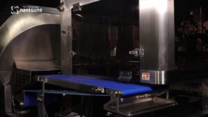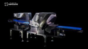 Introducing technologies established in the Libra series, such as weight measurement and shape recognition by 3D non-contact measurement. With weight accuracy of ±5% (when the number of slices is 5 or more per pack), the pack fixed weight mode allows for the creation of beautiful products simply by placing them on a tray without the need for weight matching or reworking, which is essential in the production of packaged products.