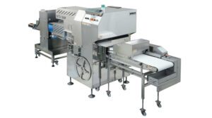 The newly developed peeling mechanism mounted on the circular blade prevents the sliced meat from stretching and further improves the appearance of the product to be served by laying the meat on the conveyor.