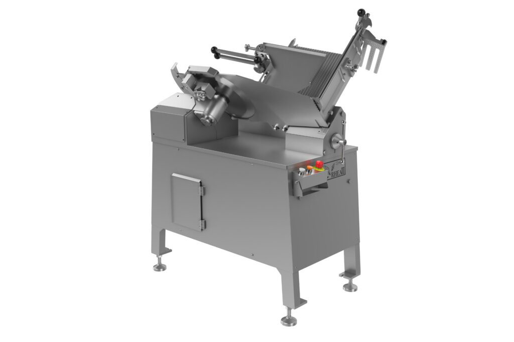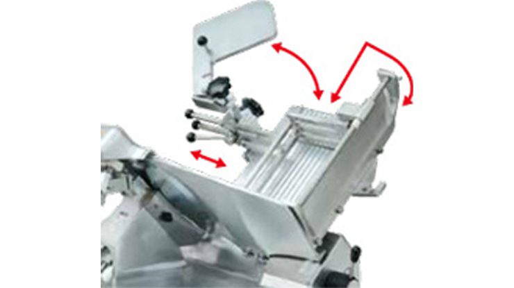 ●Proprietary two-step chucking mechanism holds the meat firmly and makes adjustment depending on the remaining length of the material. When the meat is near the end of slicing, the counter plate pushes the remaining for a final slice to minimize the thickness of residual meat down to 15mm.