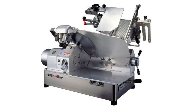 ●The upper presser has changed from a ratchet system to a knob fixation system which holds the slab of meat firmly and does not shift during slicing