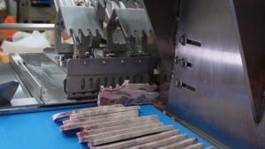 ●Even at a maximum speed of 330 pieces/min, the round blade slicing is clean and uniform.