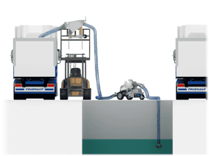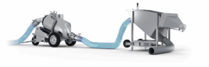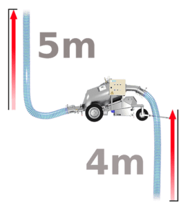 Its thrust reversal system allows it to discharge at a height of 5 m and to suck at a depth of 4 m, which makes it practical for loading a truck, the pump remaining on the ground.