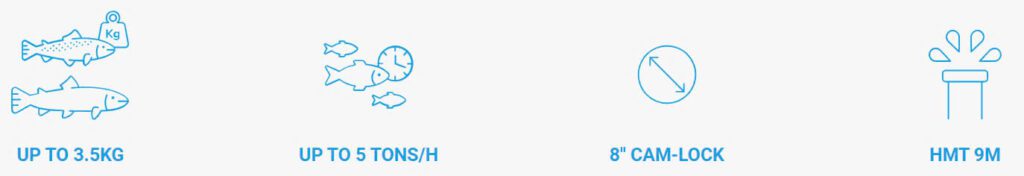 We have developed a vacuum pump model specially adapted to the handling and harvesting of large fish. The Pescavac 50 fish pump is capable of transferring fish of average weight 3 kg (salmonids) very gently.